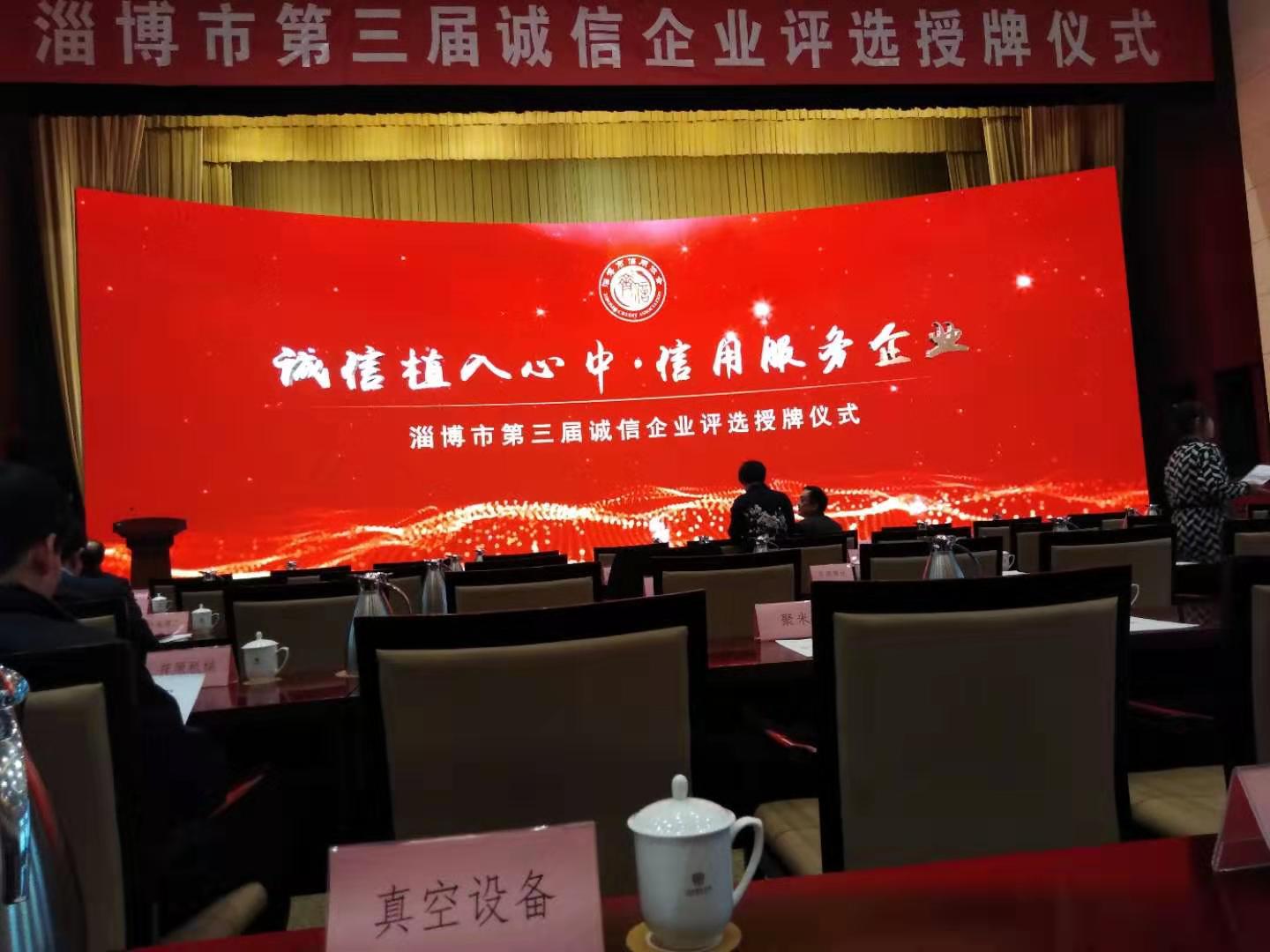 2020年1月9日,淄博市第三屆誠信企業(yè)授牌儀式在山東齊盛國際賓館會議中心隆重舉行。在本次評選授獎活動中,淄博真空設備廠有限公司再次被評為“淄博市優(yōu)秀誠信企業(yè)”。