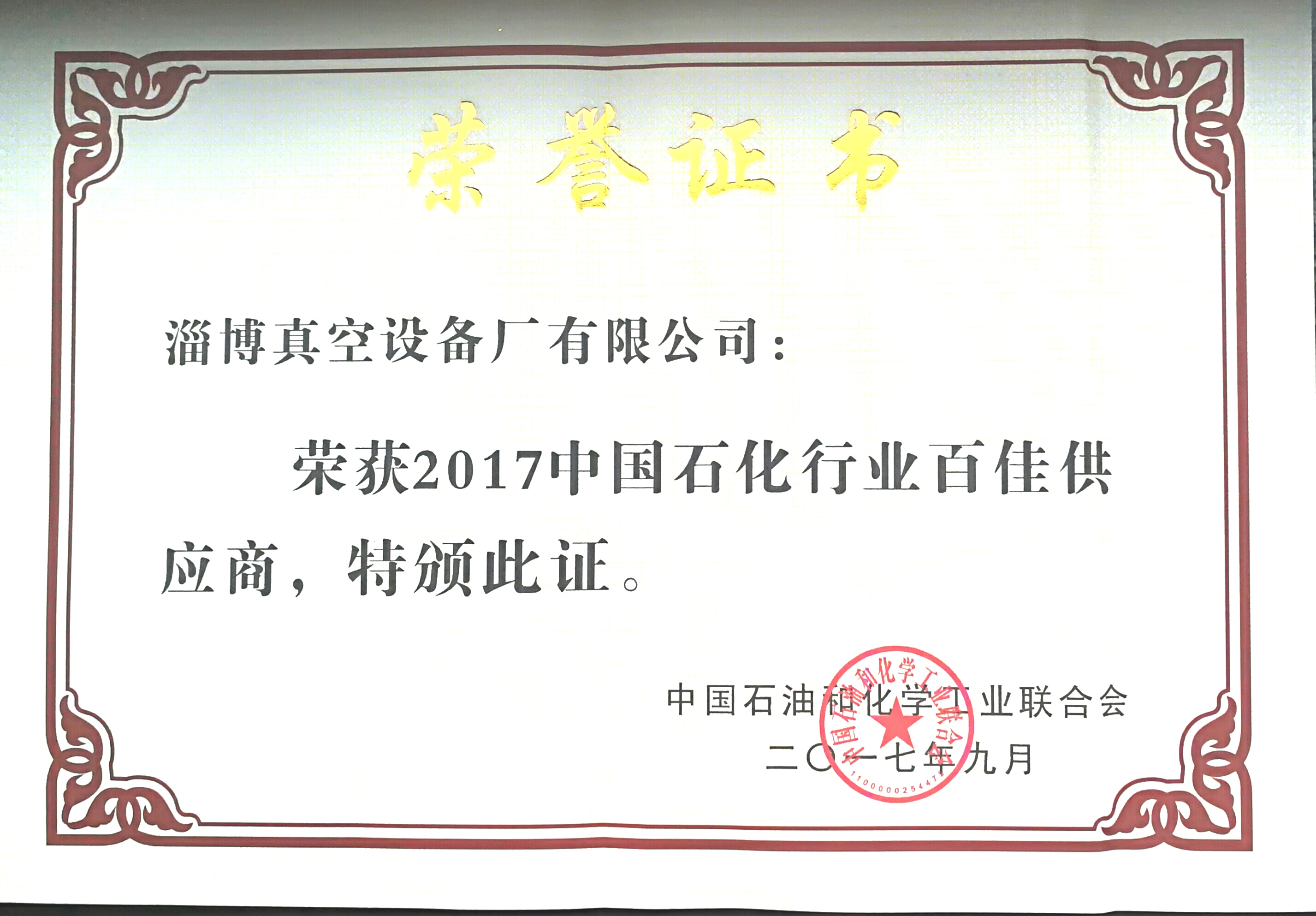 雙山真空榮獲“2017中國石油和化工行業(yè)百佳供應(yīng)商”殊榮