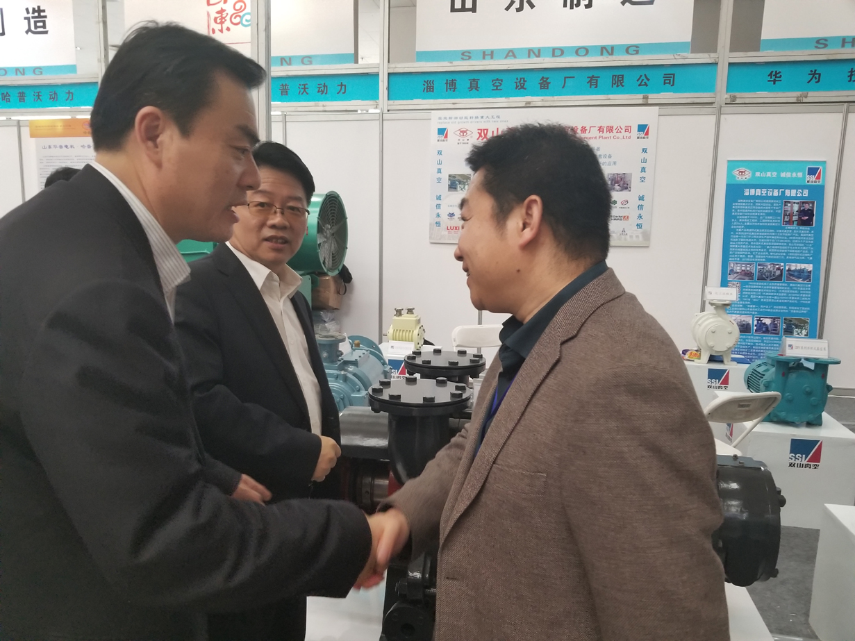 公司參加本次博覽會是隨山東省經(jīng)濟(jì)和信息化委員會、山東省裝備制造業(yè)協(xié)會組團(tuán)參加。省經(jīng)信委二級巡視員張中軍和省裝備制造業(yè)協(xié)會秘書長陶俊義來到公司展臺前仔細(xì)參觀了我公司展品,詢問了公司發(fā)展的有關(guān)情況。張主任勉勵(lì)我公司要充分發(fā)揮好在真空行業(yè)的領(lǐng)先地位,把產(chǎn)品質(zhì)量做好,把產(chǎn)品服務(wù)做好,真正為實(shí)施新舊動能轉(zhuǎn)換,全力打造山東新工業(yè)做出自己的貢獻(xiàn)。
